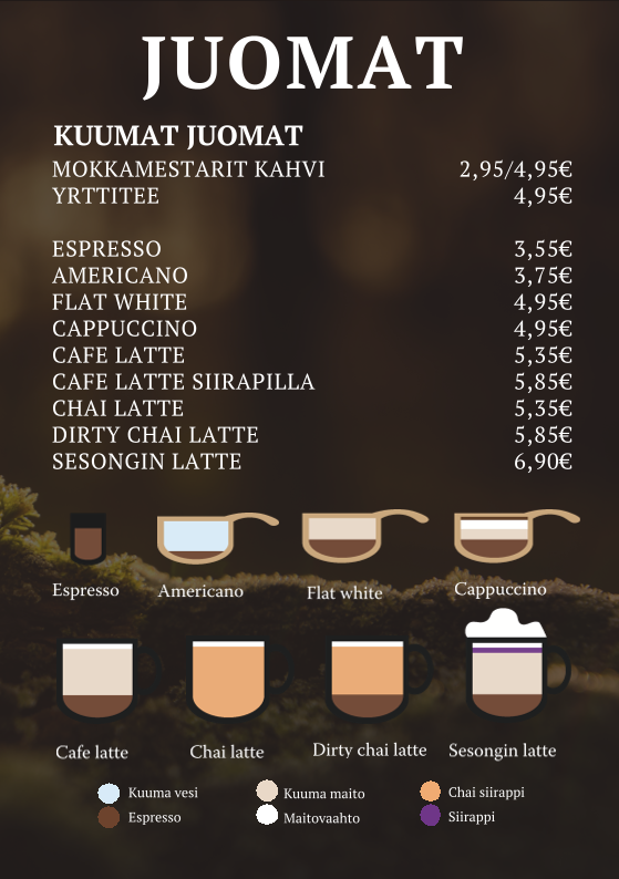 Introducing Laelta, a charming café nestled along the waterfront of Näsiselkä Lake in Tampere, Finland. Here, the blend of nature and urban life creates an inviting atmosphere, perfect for unwinding. Laelta’s menu features an array of hot and cold beverages, alongside a curated selection of wines and light snacks, ideal for both coffee enthusiasts and casual diners alike.